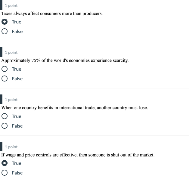 Solved 1 point Taxes always affect consumers more than